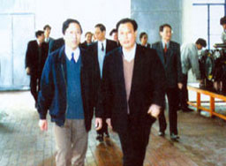 | 江蘇省張副省長(zhǎng)(前右)來(lái)公司視察 | 原江蘇省省委陳書(shū)記(左三)來(lái)公司視察 |