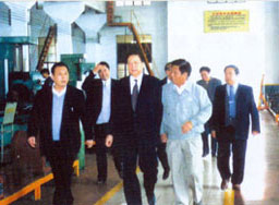 | 梁省長(zhǎng)(前左一)在董事長(zhǎng)陪同下視察企業(yè) | 原副省長(zhǎng)俞興德到生產(chǎn)車(chē)間視察工作 |
